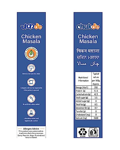 Introducing the blend of spices for an authentic Chicken Curry experience - Chukde Chicken Curry Masala. Made with carefully sourced ingredients this spice blend is to elevate your chicken curry to a whole new level of deliciousness. Each pack contains coriander cumin split red gram red chilli turmeric fenugreek leaves iodized salt dry ginger black pepper cassia bark (taj) big cardamom seeds nutmeg cloves maca and kachari. This combination of spices s depth complexity and an irresistible aroma to your chicken curry. Our chicken curry masala is versatile and can be used to make a variety of chicken dishes. The blend is carefully crafted to create a balance of flavors with the right amount of heat and spice. Simply this masala to your chicken and other ingredients during the cooking process and let it work its magic. Chukde Chicken Curry Masala is for those who love to experiment with their cooking and want to try something new. The spices are ground and mixed together to create a fragrant and flavorful blend that is sure to impress. So go ahead and indulge in the authentic flavors of India with Chukde Chicken Curry Masala. Get your hands on Chukde Chicken Curry Masala today and take your cooking to the next level. Try it out for yourself and experience the authentic taste of India in every bite.