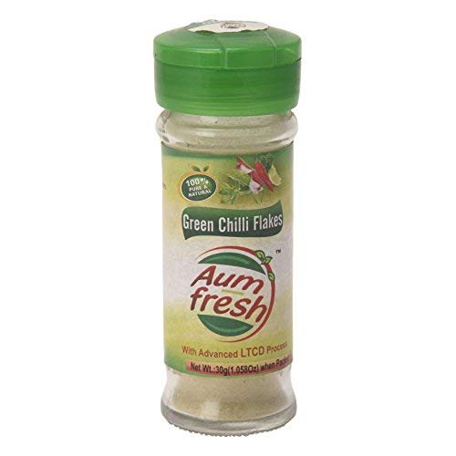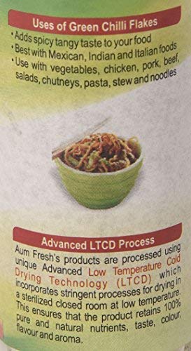 Green Chilli Flakes - 100% Pure & Natural 30 gm No artificial flavour & -when compared with sun dried or freeze dried our products are found to yield all the qualities like color, flavor, aroma, taste, rehydration ,nutritional values and increased shelf life property to an unmatchable extent taking it very close to the fresh ones and makes our technology the best drying technology of the present era. is committed to supply quality products. We work with thousands of small family farmers in India to cultivate thousands of acres of sustainable organic farm land. By choosing products you are not only getting pure solid matter but also spiritual vibrations imbibed nanoscopically during processing. proves itself to be your right choice.