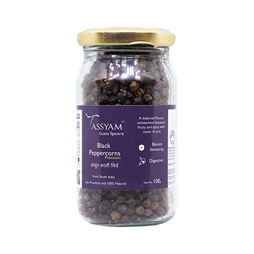 Tassyam 14 Mesh Black Peppercorns 100 Grams | Kali Mirch Bottle