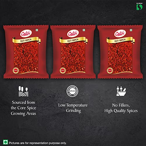 Catch Kuti Mirch is known for its vibrant red colour spicy flavour authentic aroma and rich quality. Catch Kuti Mirch can bring a delightful taste to many dishes like dal tadka chutney sauces meat preparations and other rich delicacies of Indian Kitchens. Catch Kuti Mirch is made from high-quality red chillies sourced from the best farms in India. Catch Spices are packed hygienically with state of the art technology ensuring minimal human contact. Catch Kuti Mirch is available in 100g and 200 g packs giving you the flexibility of purchasing as per your needs. Catch Kuti Mirch does not have any added fillers. Catch Ka Koi Match Nahi. 100% STORAGE INSTRUCTIONS: Keep in a cool & dry place.