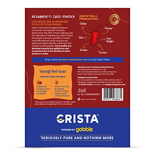 Hey! Its me Reshampatti Chilli Powder. Proud of my: My spicier heat profile and versatile use. Premium grade original pure natural and sundried indigenous Reshampatti chillis are procured directly from the farms of Andhra Pradesh. Characterized by their pungent taste and high heat value as measured in Scoville Heat Units of ~35000-45000 SHU the chillis possess a high heat note. These chillis are becoming increasingly popular across many Indian cuisines that require a bit of a kick. Once sourced the chillis are transported to the factory where they are cleaned and processed before being freshly machine ground into a texturized powder using our sophisticated hammer crushers and micro pulverisers. The final step is mixing in an automatic GMP blender to achieve the desired texture and consistency.