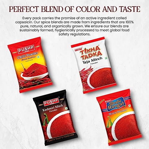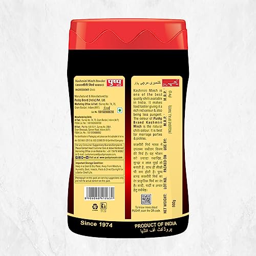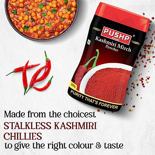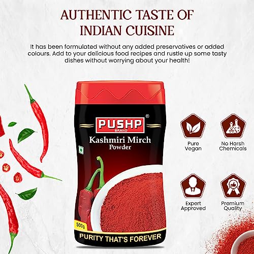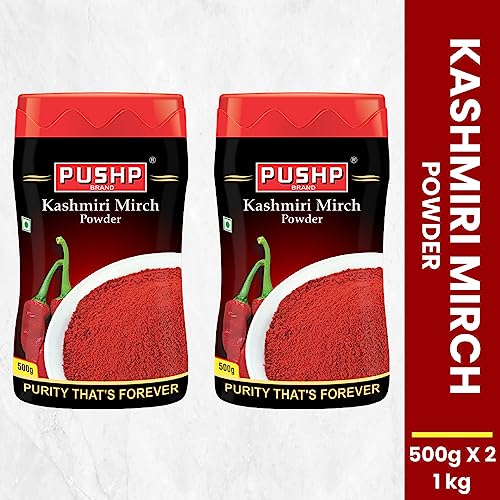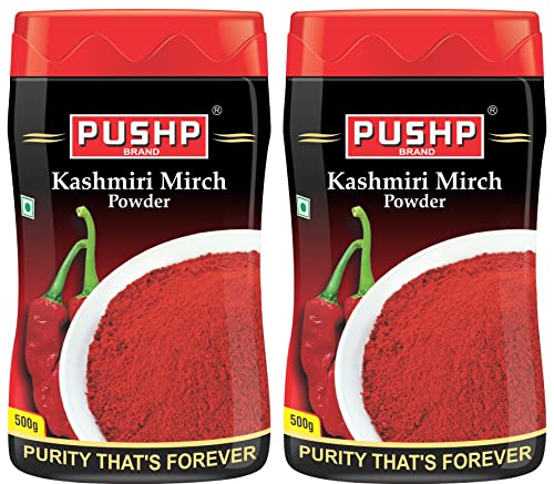 Pushp Brand Kashmiri Red Chilli Powder 500g Jar (Pack of 2)