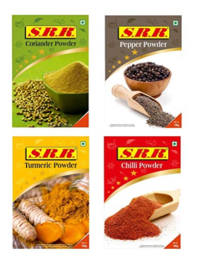 SRR Masala Pack of Pepper Coriander Turmeric and Chilli Powder Combo ( Tikha lal ) 100 Grams Each