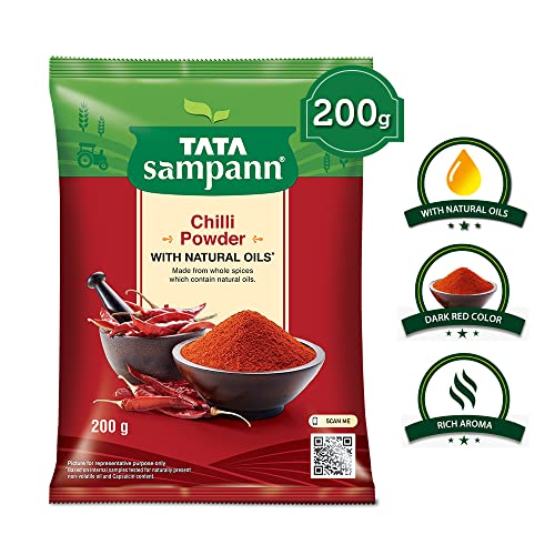 Tata Sampann Chilli Powder With Natural Oils 500gTata Sampann's range of spices are crafted not just to satisfy your taste buds but also to take care of your health. Made from whole spices that contain natural oils red chilli has an active ingredient called capsaicin. With no added preservatives this chilli powder can be teamed up with pulao greenies baked corn or pasta the choice is yours! Storage Instructions: Store in a cool and dry place.Tata Sampann Chilli Powder With Natural Oils 200gTata Sampann's range of spices are crafted not just to satisfy your taste buds but also to take care of your health. Made from whole spices that contain natural oils red chilli has an active ingredient called capsaicin. With no added preservatives this chilli powder can be teamed up with pulao greenies baked corn or pasta the choice is yours! Storage Instructions: Store in a cool and dry place.