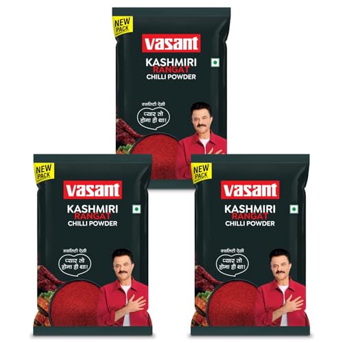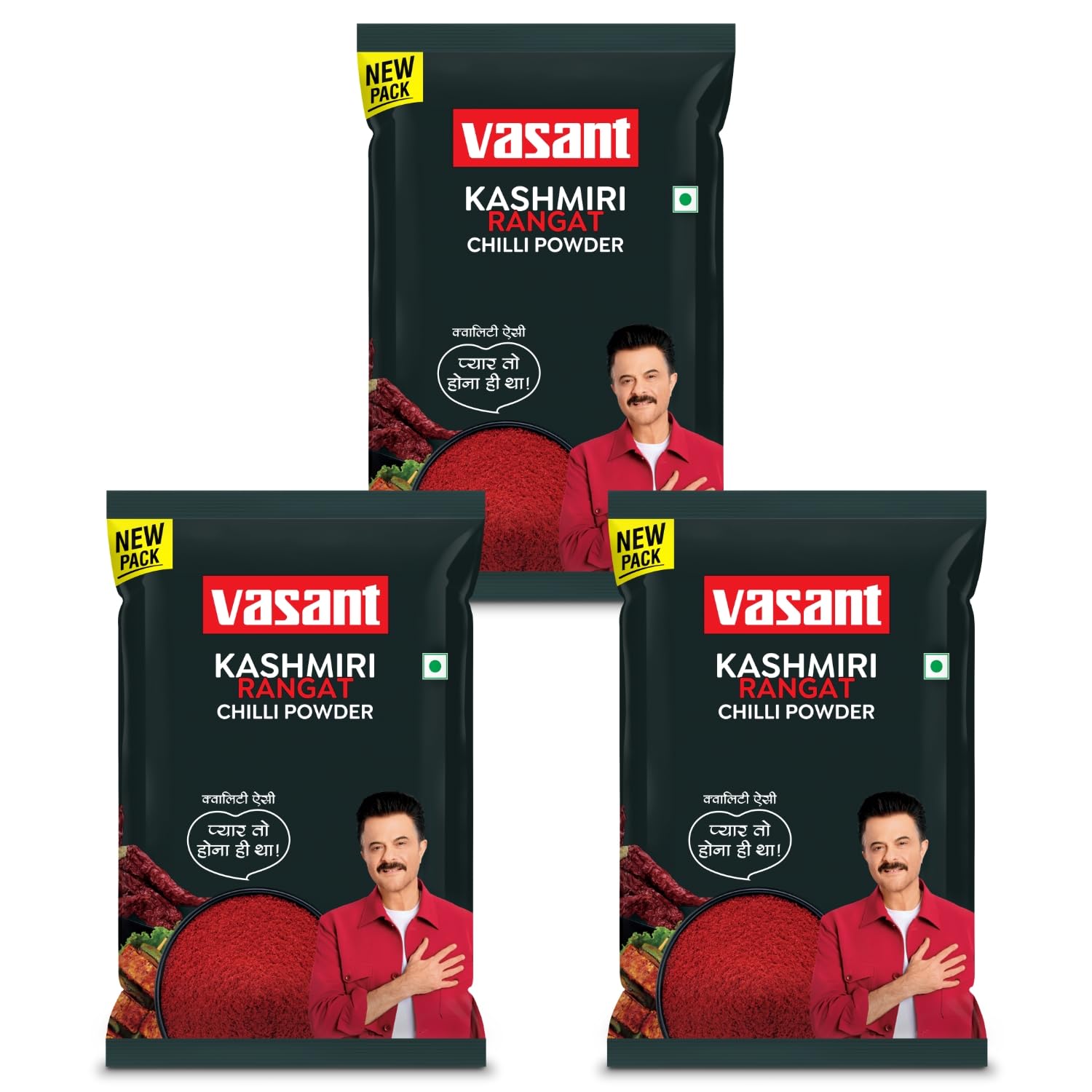 VASANT Kashmiri Rangat Chilli Powder 300Gm Combo - Pack of 3 | Each 100Gm | Kashmiri Chilli Powder - No added Colours Flavours and Chemical | Pack of 3