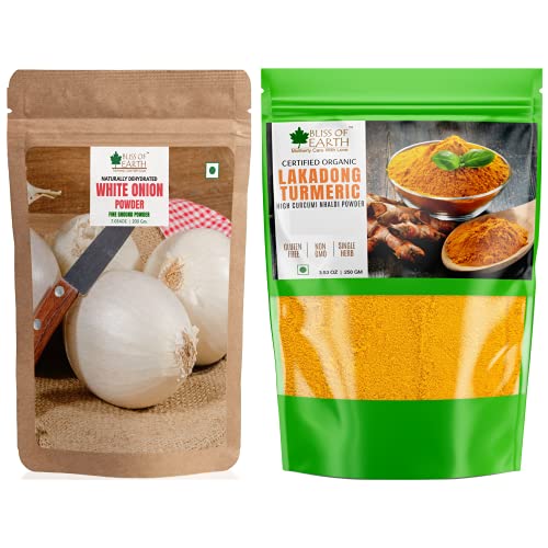 Bliss Of Earth Combo Of Natural White Onion Powder (200gm) Good For Cooking & Hair Growth And High Curcumin Certified Organic Lakadong Turmeric Powder (250gm) Pack Of 2