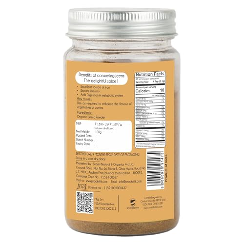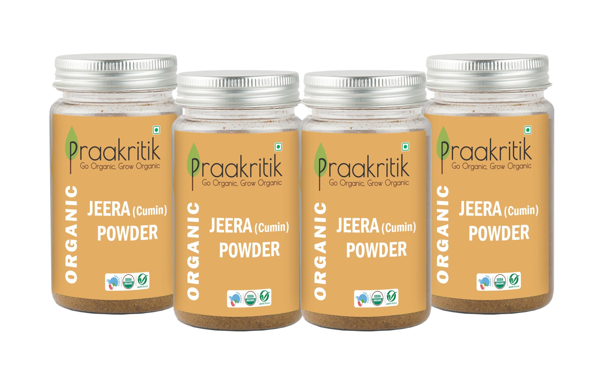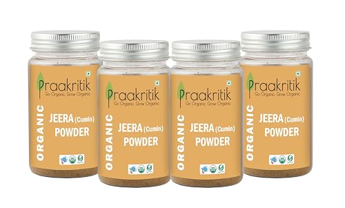 Praakritik Organic Jeera Powder | 100% Organic | 100% Natural | Organic Cumin Powder | Cumin seeds Powder | No Added Preservatives and Colors | Pack of 4 | 100 Grams Each