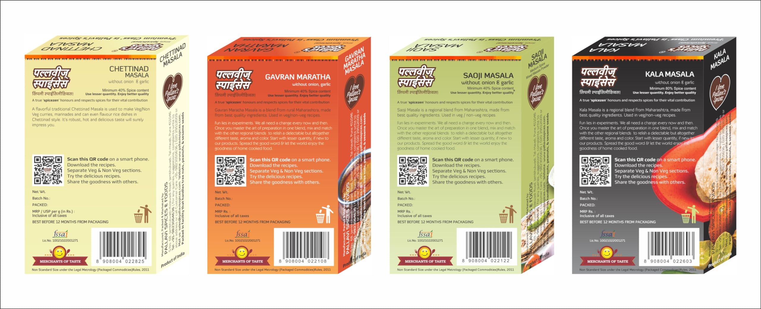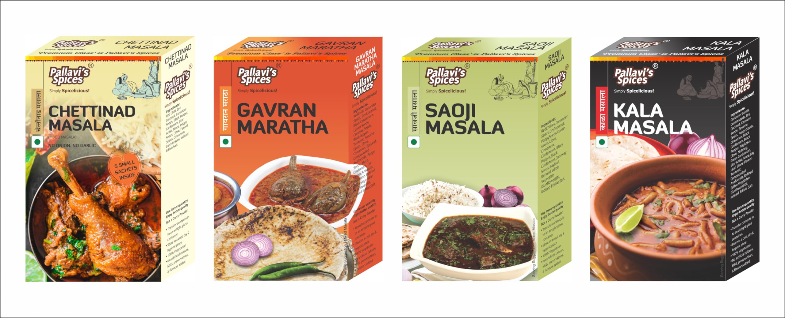 1 packs of Chettinad + Gawran + Saoji + Kala Masala 50g each