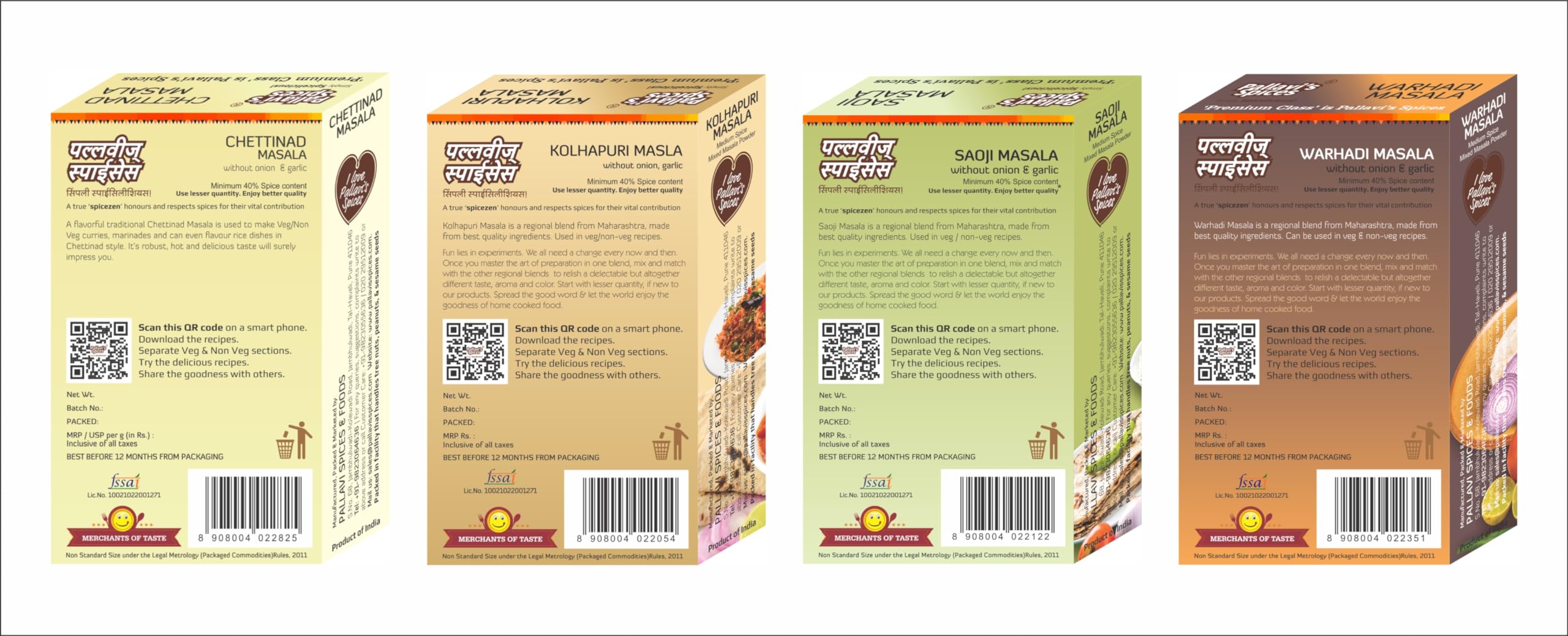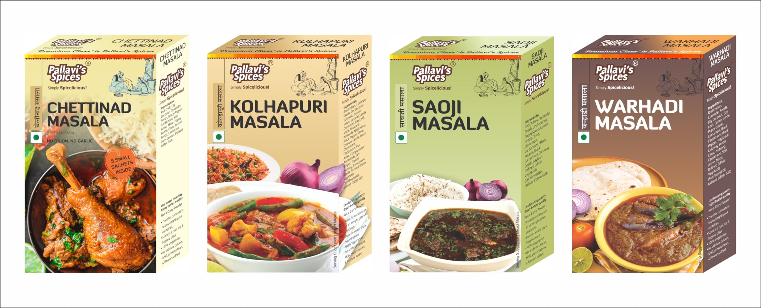 Pallavi's Spices Combo Pack Of Chettinad + Kolhapuri + Saoji + Warhadi Masala 200Gm (Pack of 4)