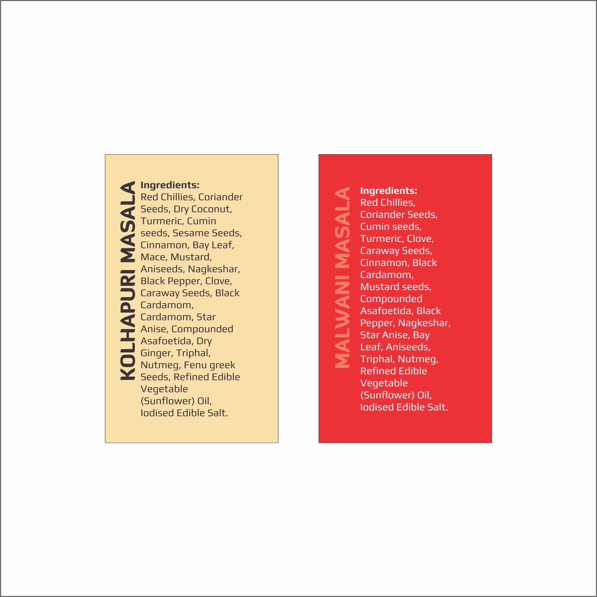 2 packs of Kolhapuri Masala and 2 packs of Malwani Masala 50g each