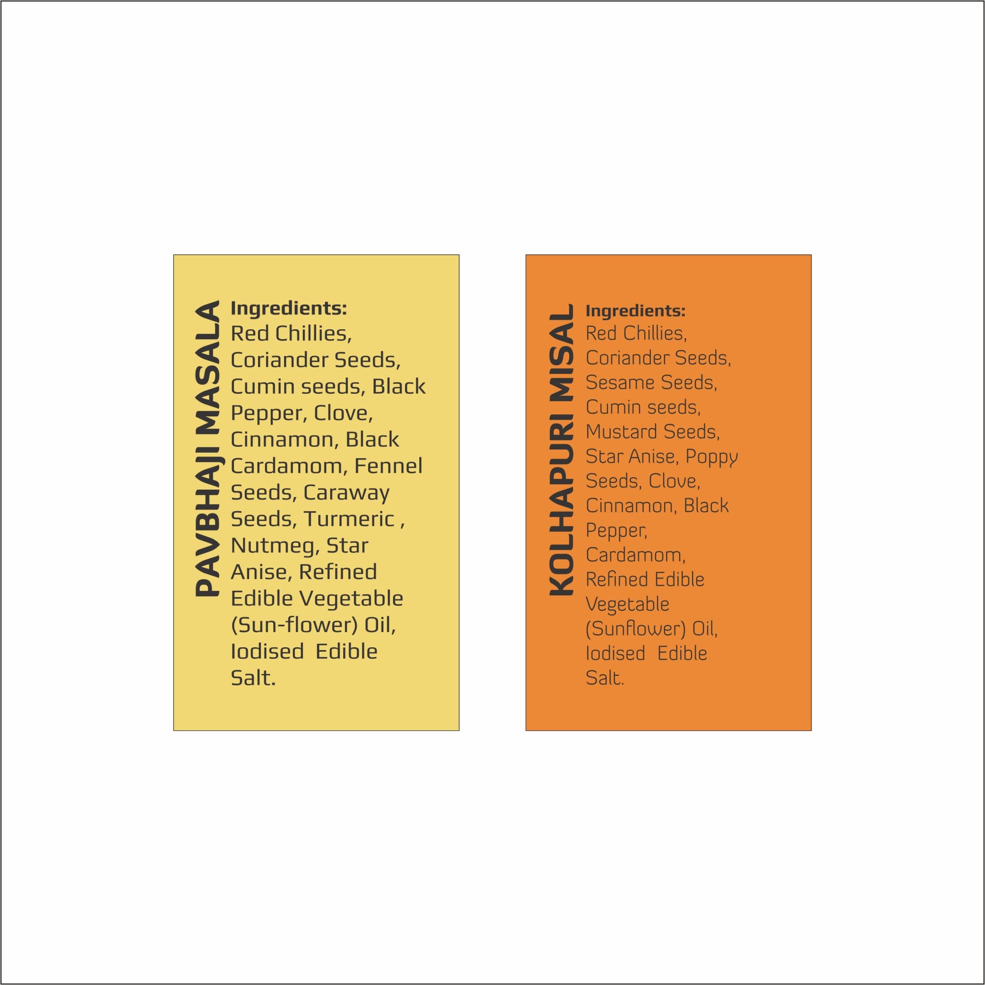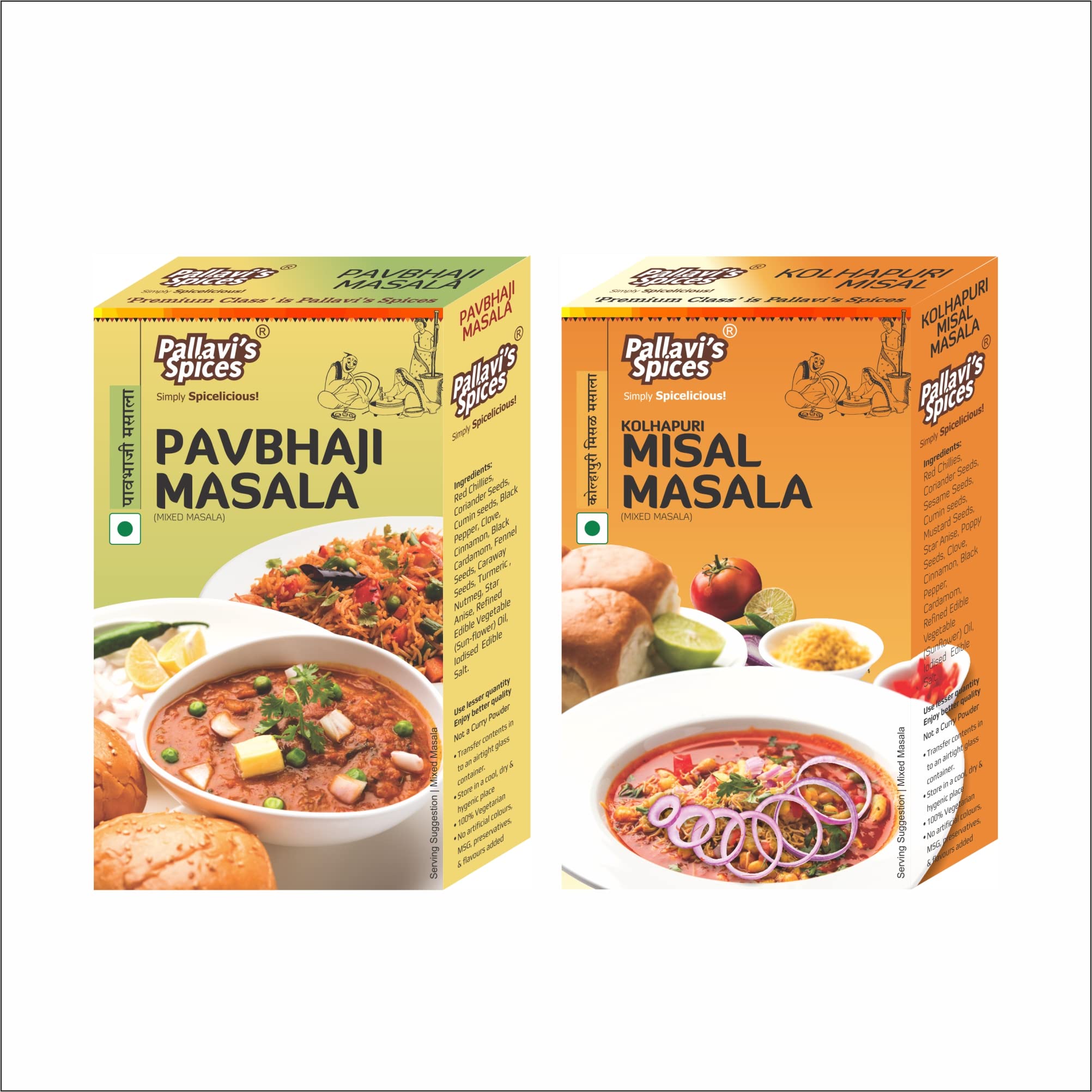 2 packs of Pavbhaji Masala and 2 packs of Kolhapuri Misal Masala 50g each