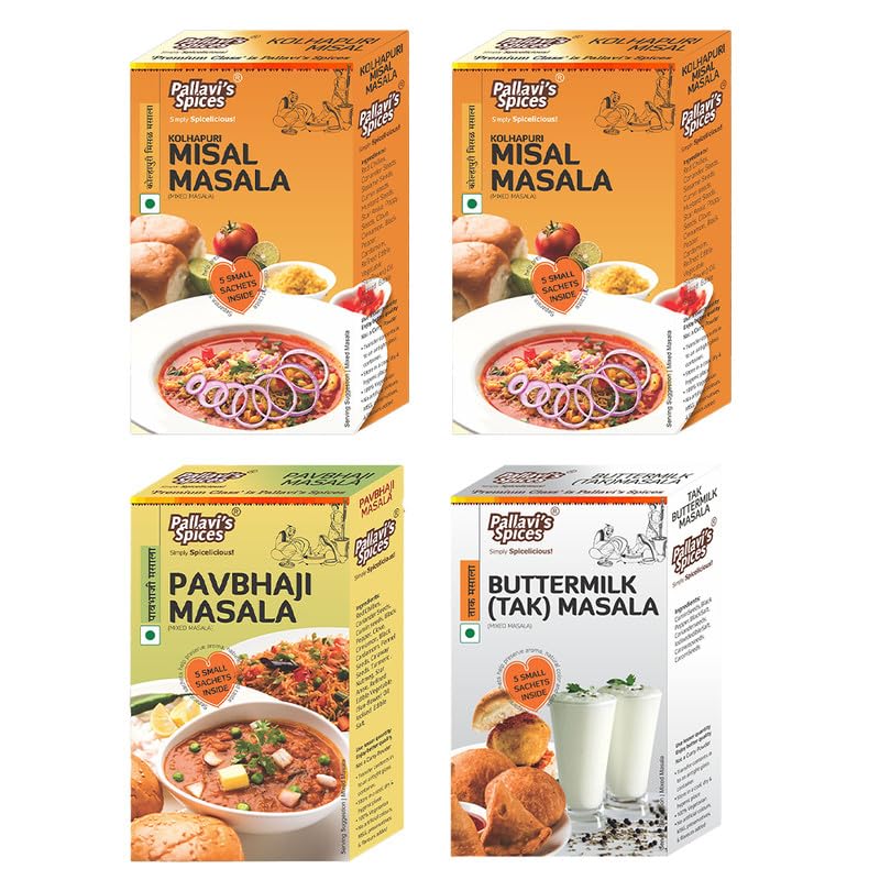Pallavi's Spices Misal Masala (50gx2) Tak Masala (100gx1) Pavbhaji Masala (50gx1) | No Artificial Color | No Preservatives | Indian Masala | Pack of 4
