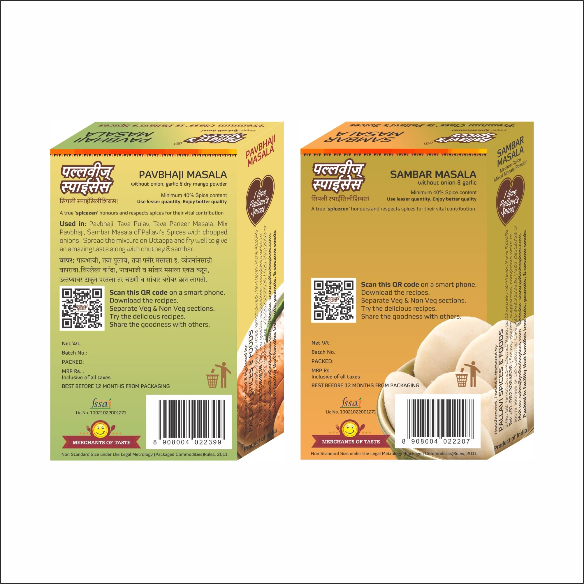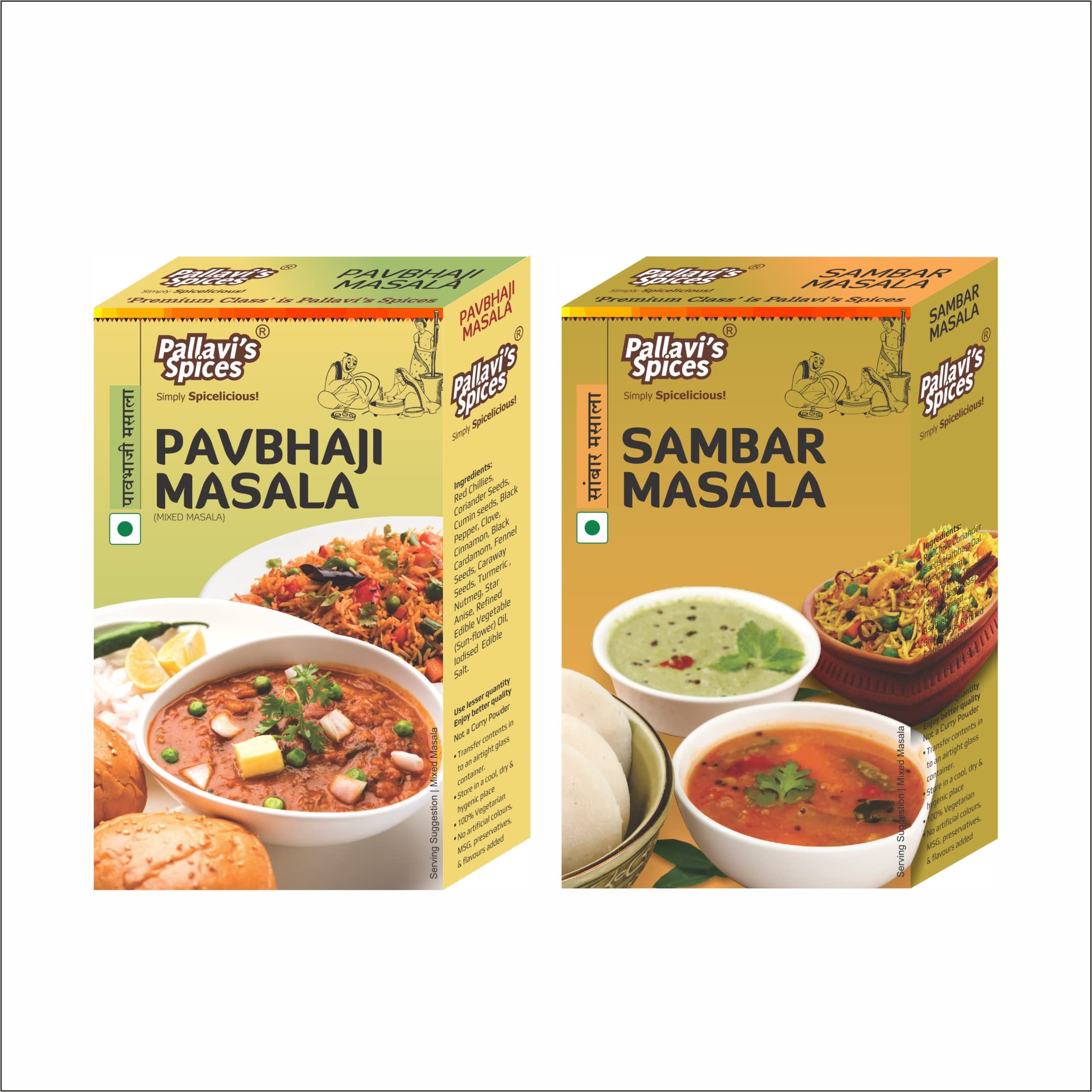 Pallavi's Spices Pavbhaji Masala and Sambar Masala 200g (Pack of 4) 2 each