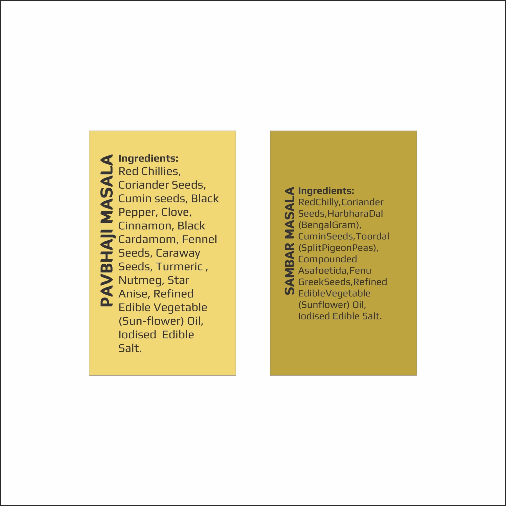 2 packs of Pavbhaji Masala and 2 packs of Sambar Masala 50g each