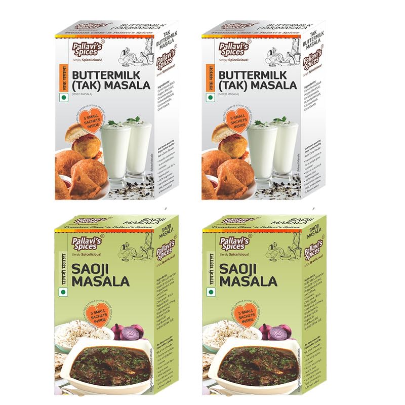 Pallavi's Spices Saoji Masala (50gx2) Tak Masala (100gx2) | No Artificial Color | No Preservatives | Indian Masala | Pack of 4