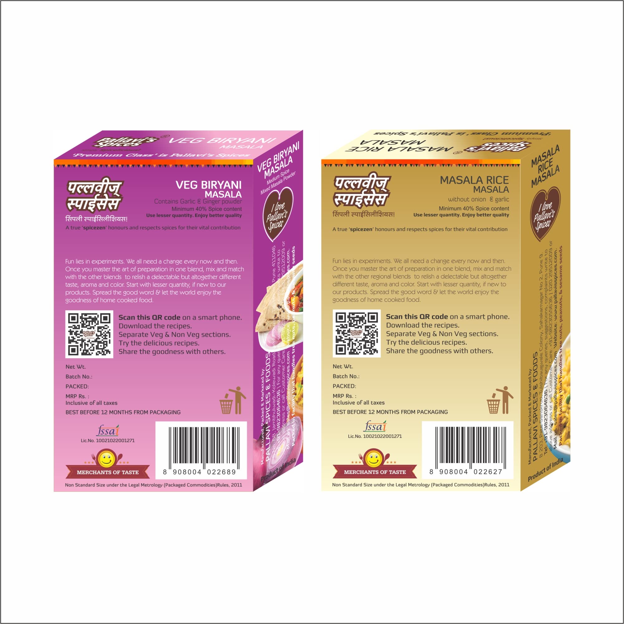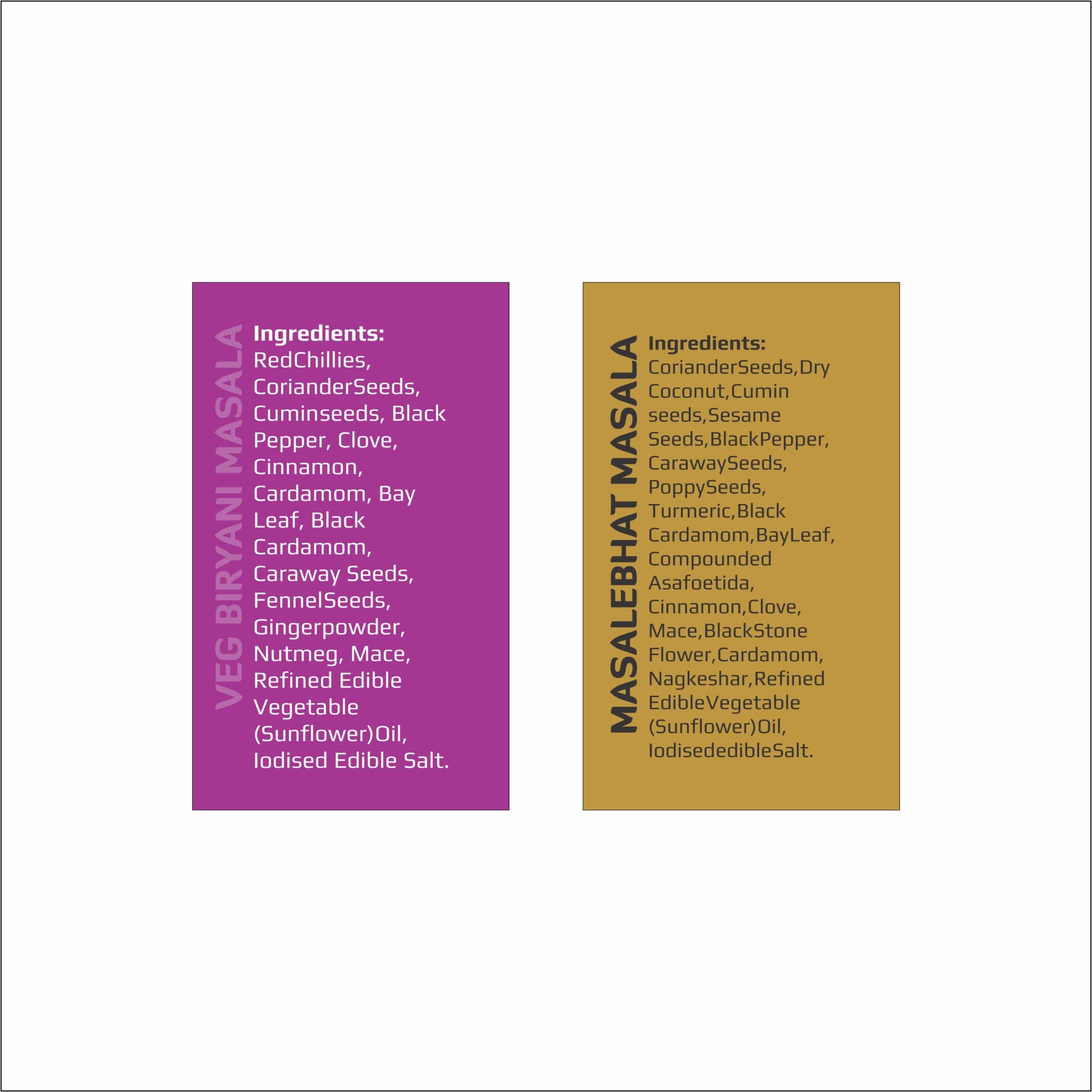 2 packs of Veg Biryani masala and 2 packs of Masalebhat Masala 50g each