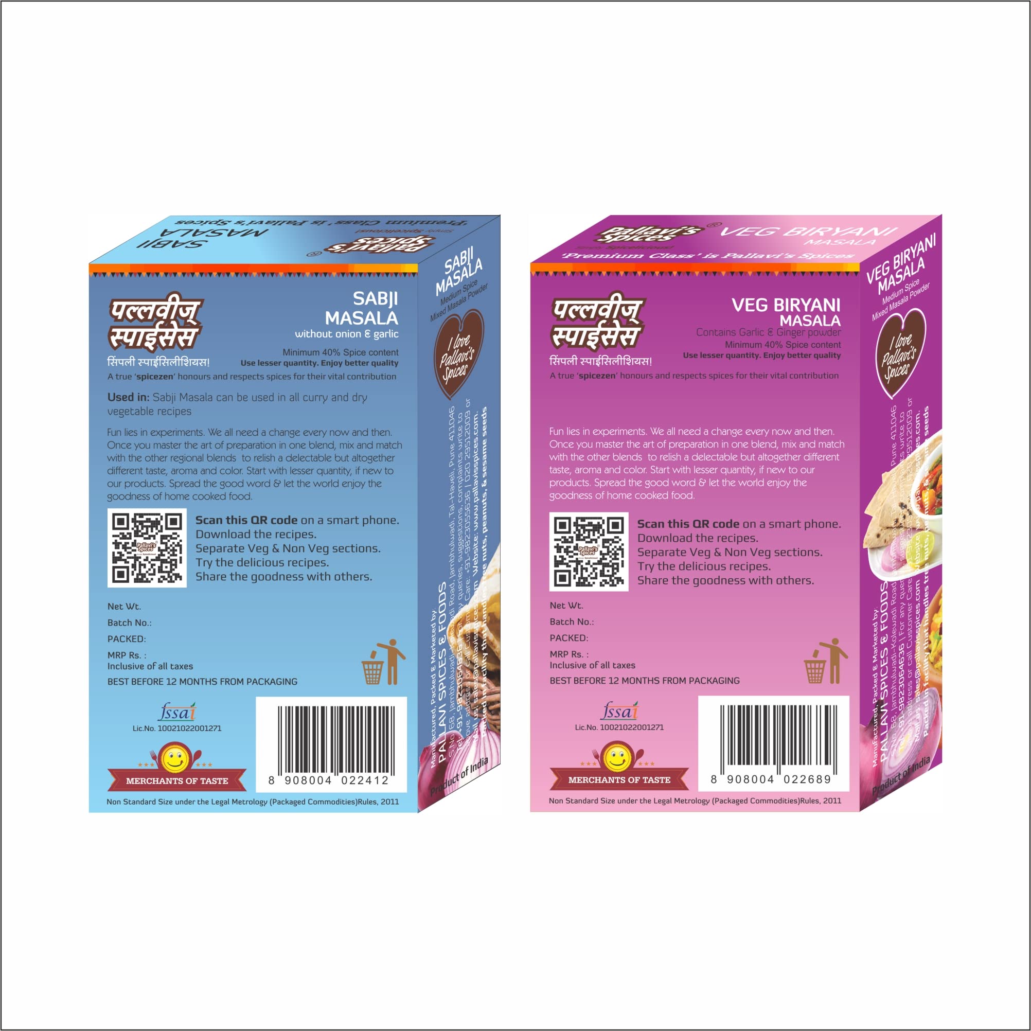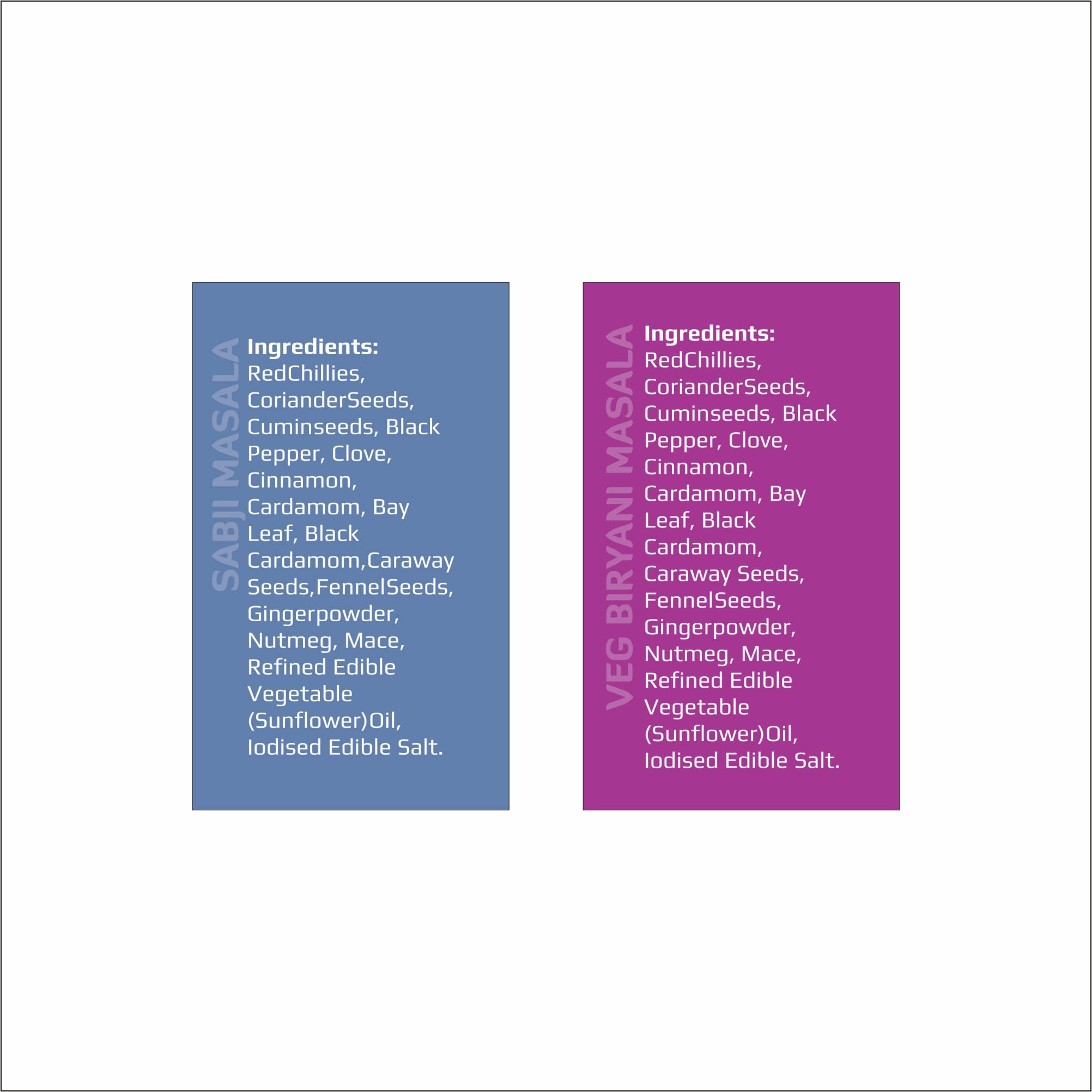 2 packs of Veg Biryani Masala and 2 packs of Sabji Masala 50g each