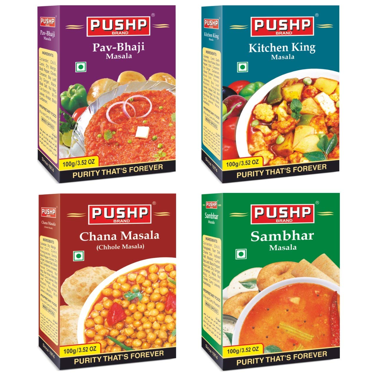 Pushp Brand Combo Spices Pack 100g Each (Pack of 4)