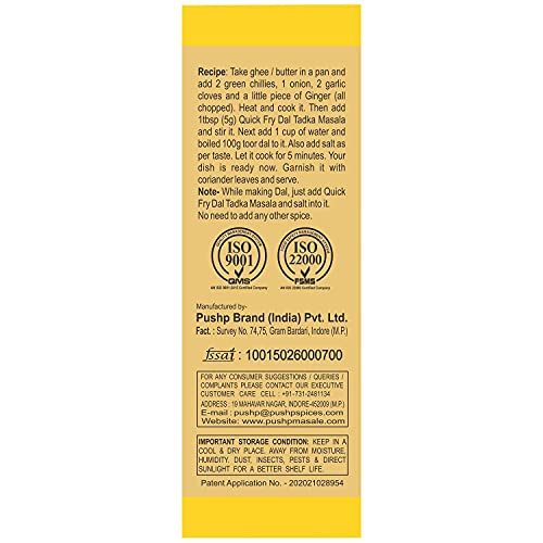 Pushp Brand - Ready to Cook Quick Fry Dal Tadka Masala (100g Box Pack of 1)
