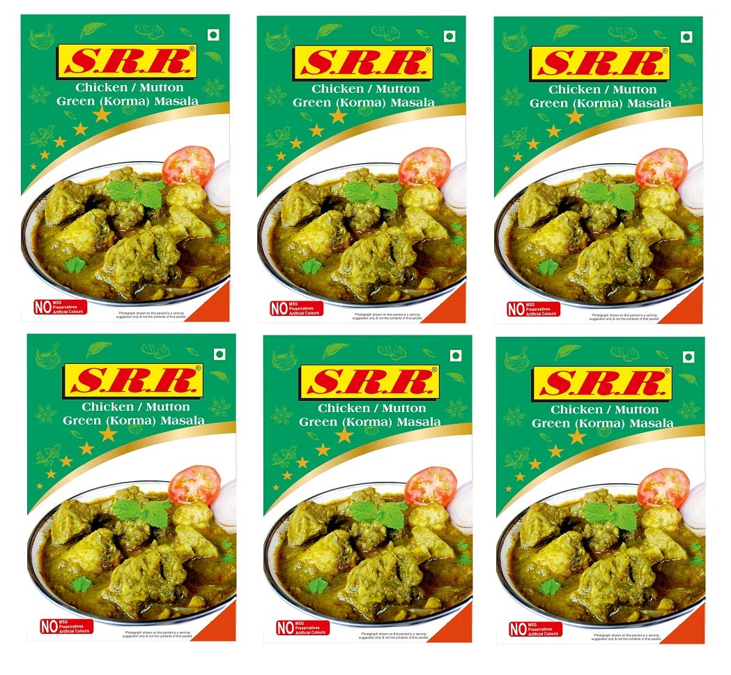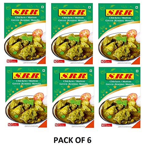 SRR Chicken Korma Mutton Korma Green Masala Pack of 6 (50 Grams Each)