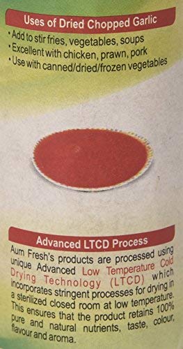 Dried Chopped Garlic - 100% Pure & Natural 10 gm No artificial flavour & -when compared with sun dried or freeze dried our products are found to yield all the qualities like color, flavor, aroma, taste, rehydration ,nutritional values and increased shelf life property to an unmatchable extent taking it very close to the fresh ones and makes our technology the best drying technology of the present era. is committed to supply quality products. We work with thousands of small family farmers in India to cultivate thousands of acres of sustainable organic farm land. By choosing products you are not only getting pure solid matter but also spiritual vibrations imbibed nanoscopically during processing. proves itself to be your right choice.