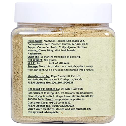 chaat masala 300g [all natural and blend of 15 spices herbs and salts] chaat masala literally means 'tangy spice'. It is tangy blend of 15 spices herbs and salts. Contains amchoor iodized salt black salt pomegranate seed powder cumin ginger black pepper coriander seeds chilly ajwain kachini nutmeg cloves hing and mint leaf powder. This savoury spice blend is frequently used in indian cuisine as a finishing sprinkle over chaats parathas salads raitas fruits and even some beverages. Made of everyday spices combined smartly with pungent ingredients like black salt and amchur powder. Our chaat masala has a strong aroma which draws one to any dish it is ed to. Not only is this a great flavour enhancer this is an excellent and appetite ing blend. - simply good food