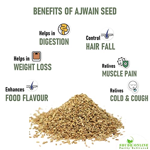 Shudh Online Ajwain Whole (Carom Seed) is sourced from the best farms. Ajwain adds flavour to the food and is majorly used in all the Indian cuisines. Ajwain seeds offer numerous health benefits have a pungent taste. The strong flavour of Ajwain Whole helps in complementing other spices like Hing and Red Chili. It is also known as Carom seed Weed seed Vaamu ajawain ajvaain carrom seeds azwine aijwain ajvayan ajwan ajwine ahwain ajaiwain ajwein ajwaian aajwain ajvain ajawaine ajewain ajwaain. Shudh Online products are selectively sourced with great emphasis on purity and authenticity and are 100% natural ayurvedic products. We don't add any or additives in the product and using our product will get you closure to nature.