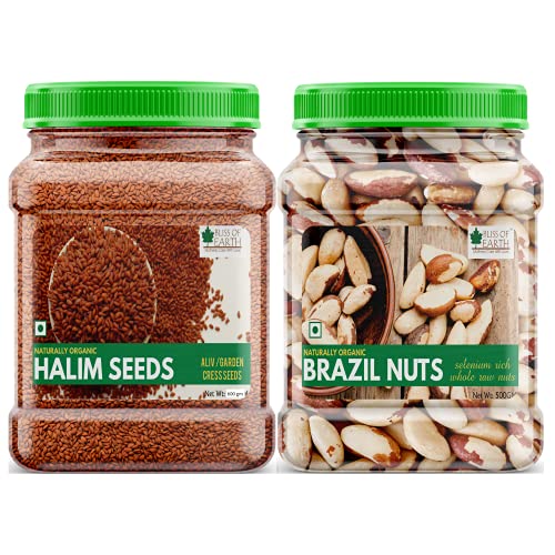 Bliss of Earth Naturally Organic Halim seeds also known as Haleem or Aliv are garden cress seeds loaded with many health benefits and nutritional qualities. These seeds were considered as an important nutritional and medicinal plant in India since the Vedic era (between 500? 1700) B.C. Halim Seeds are good source of protein fiber phenolic acids and so many nutritional compounds and considered as a functional foods that promote overall health and well-being while keeping diseases at bay apart from providing nutrition. Bliss of Earth Brazil Nuts are nutritional powerhouse providing healthy fats vitamins and minerals. They are particularly high in selenium a mineral with potent antioxidant properties. Hazelnuts can be consumed as a raw snack roasted or added to baked dishes such as cake chocolates & shakes. All in all brazil nuts are an excellent and delicious source of nutrients for a healthy diet. Direction for use: Consume raw roasted or salted. Add to your cake chocolates or shakes.