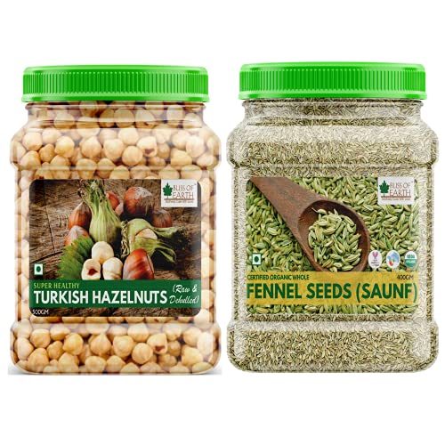 Bliss of Earth Combo Of Turkish Hazelnuts (500gm) Raw & Dehulled Healthy & Tasty And Organic Whole Fennel Seed (400gm) Pack Of 2