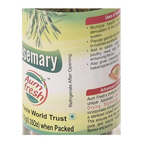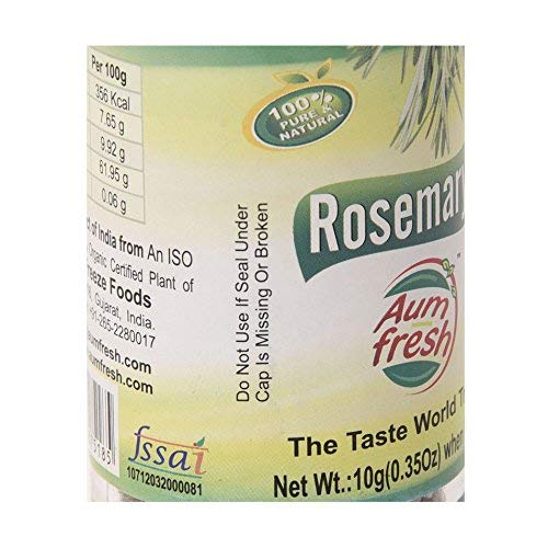 Rosemary - 100% Pure & Natural 10 gm No artificial flavour & -when compared with sun dried or freeze dried our products are found to yield all the qualities like color, flavor, aroma, taste, rehydration ,nutritional values and increased shelf life property to an unmatchable extent taking it very close to the fresh ones and makes our technology the best drying technology of the present era. is committed to supply quality products. We work with thousands of small family farmers in India to cultivate thousands of acres of sustainable organic farm land. By choosing products you are not only getting pure solid matter but also spiritual vibrations imbibed nanoscopically during processing. proves itself to be your right choice.