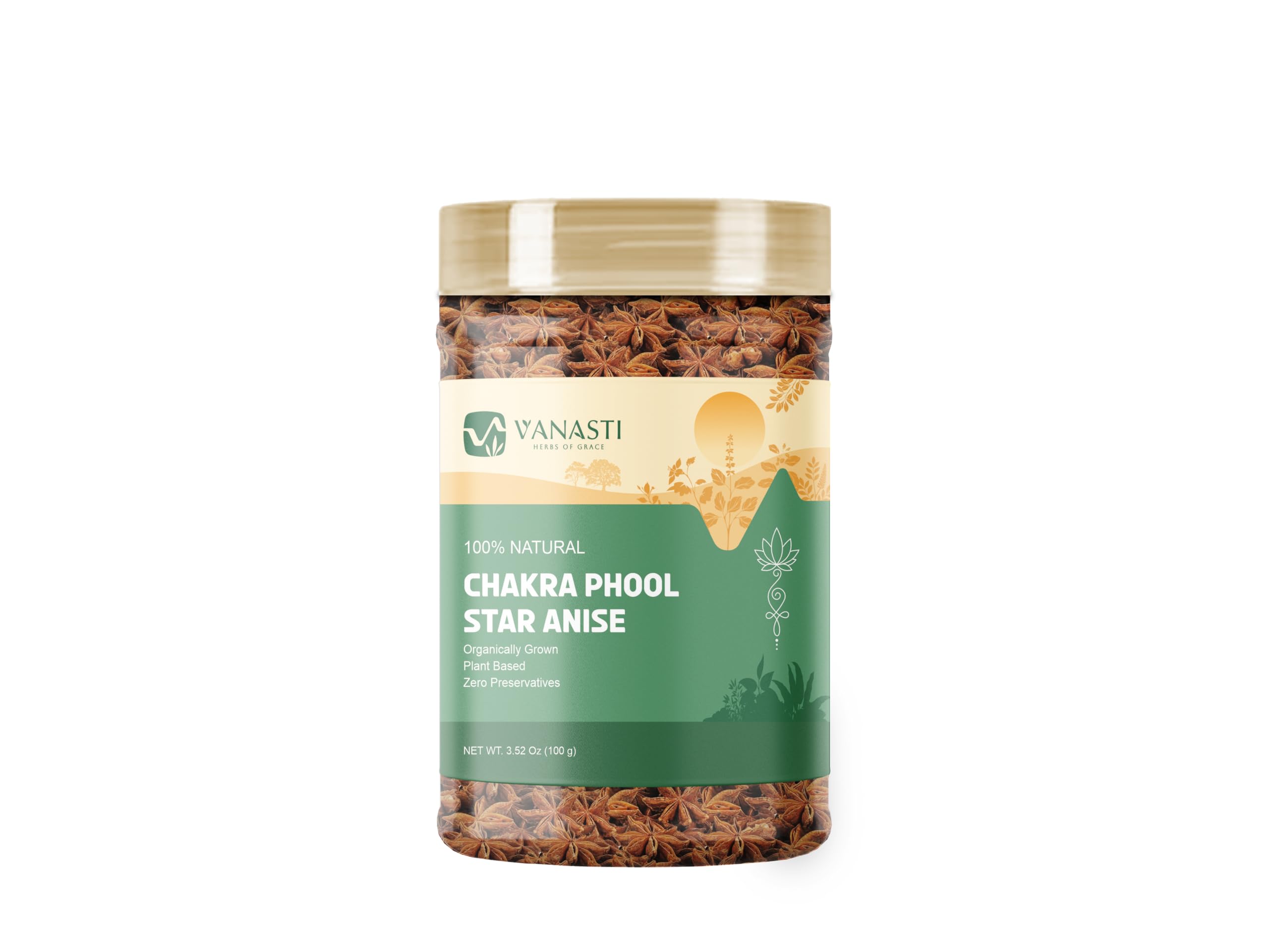 Star Anise is a spice from East Asia, easily identified by its reddish-brown, star-shaped pods with eight pointed segments. It is known for its intense, sweet aroma with licorice-like notes. Used in both sweet and savory dishes, it brings depth to broths, desserts, and spice blends. Its striking shape and strong flavor make it a favorite in regional and fusion cuisines. The pods also contain small amounts of phosphorus and B vitamins.