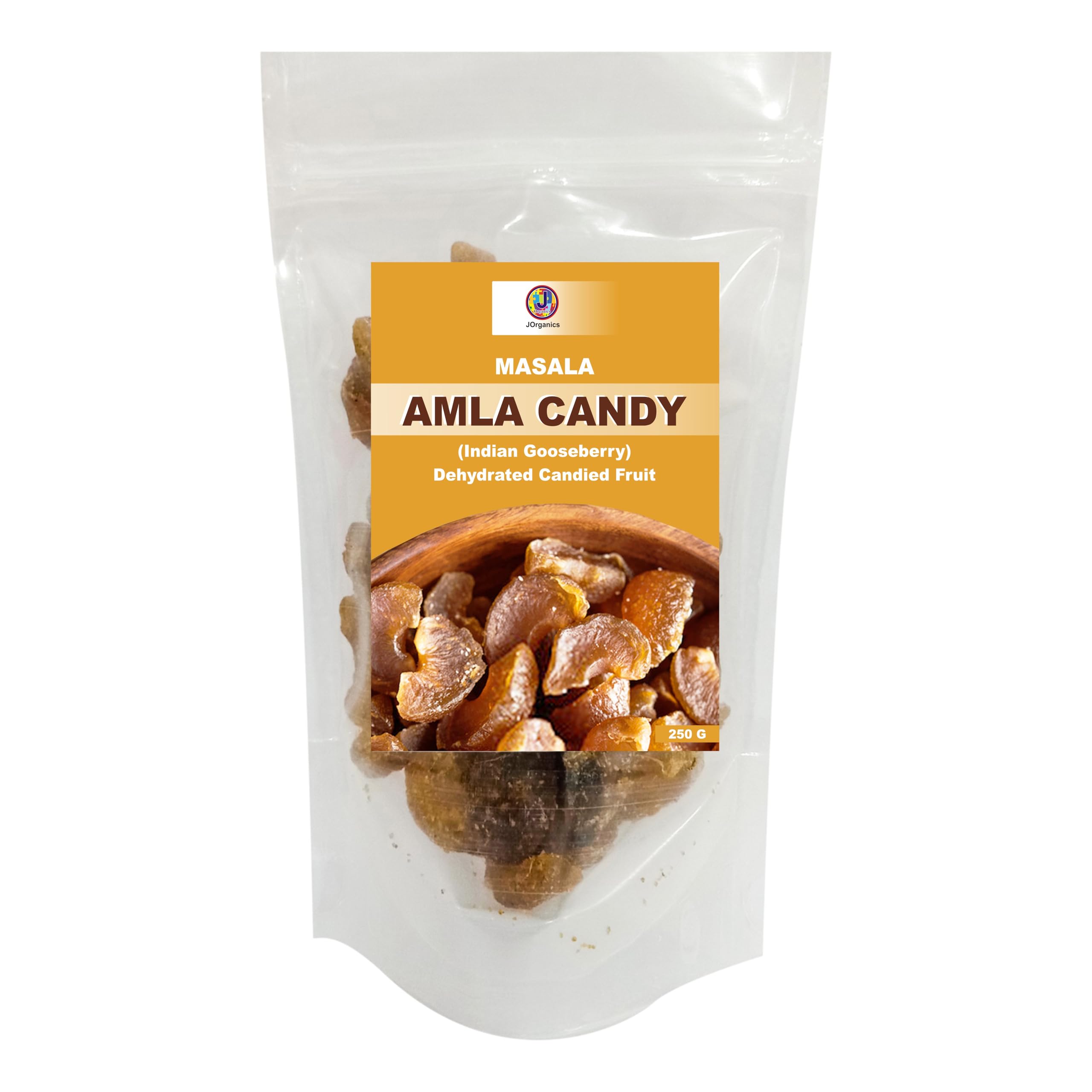 Regular consumption of Amla encourages healthy hair growth and also prevents hair thinning. As per a study the best time to have Amla is early morning on an empty stomach. As it is rich in fiber content Amla Candy is a good source of vitamin C iron and minerals it may help to boost immunity may regulates metabolism may help in hyperacidity may help in eye ailments may help in skin diseases may help in anemia and blood-related disorders.Regular consumption of amla candy may help you with digestion as it is rich in fibre. Antioxidants-rich amla can help in fighting free radicals and the damage caused by them. The benefit of amla candy over other ways to include amla in diet as that the candy can be carried to work or even when you're travelling. JOrganics all products are ayurvedic naturals non factory non toxic and non additive products