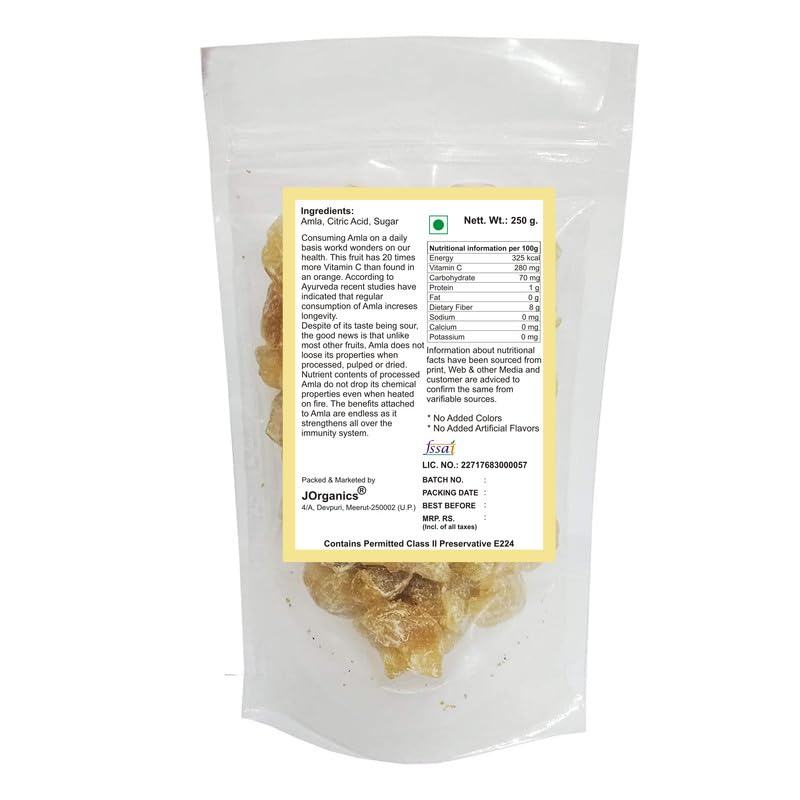JOrganics Sweet Amla Candy | Dried Amla Candy (No Sugar Coating) | Healthy & Natural Vitamin C Rich Snack | 250 Gram