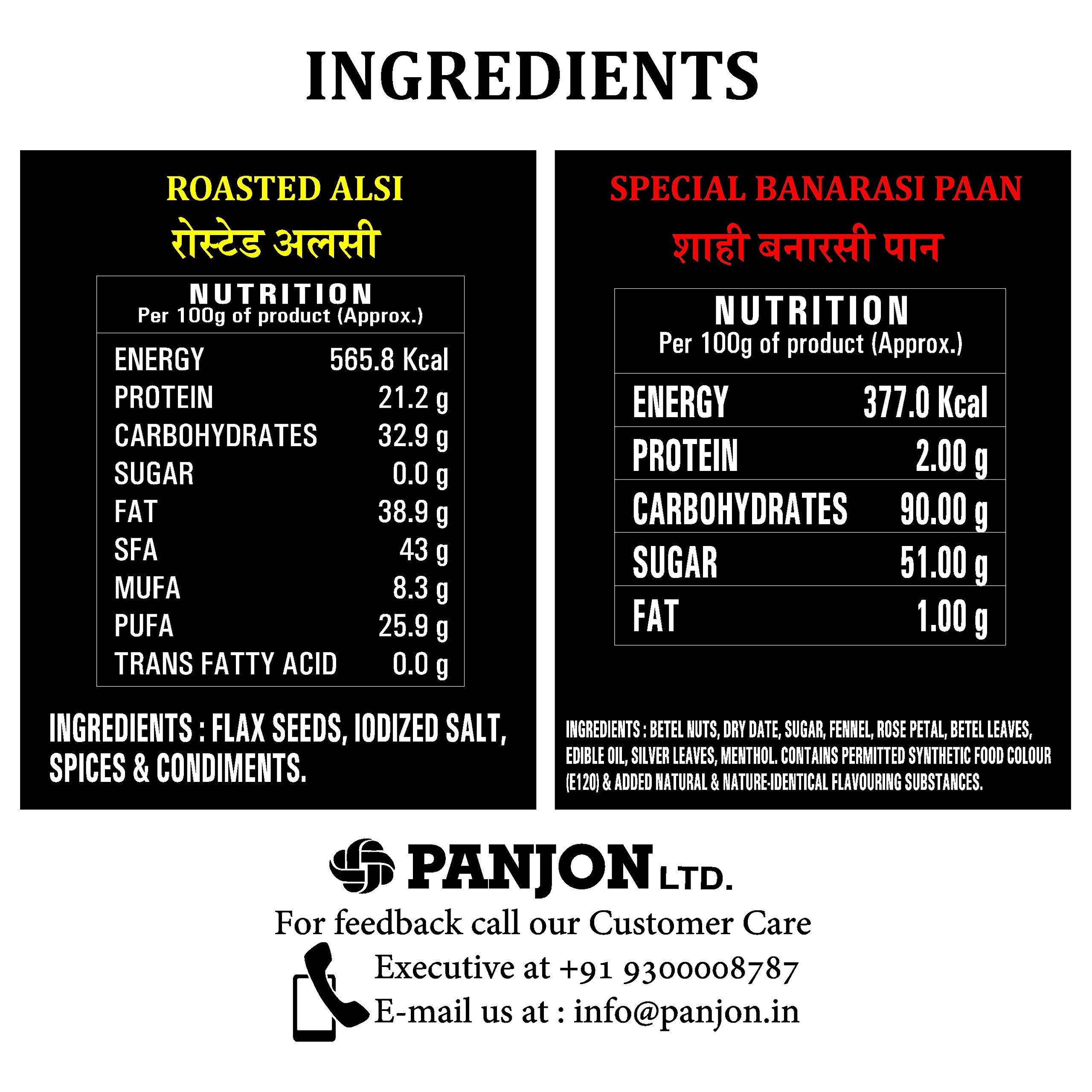 Panjon Swad Banarasi Paan & Roasted Alsi Flax Seed Mukhwas (100% Digestive Mouth Fresheners) 2 Bottles 210g