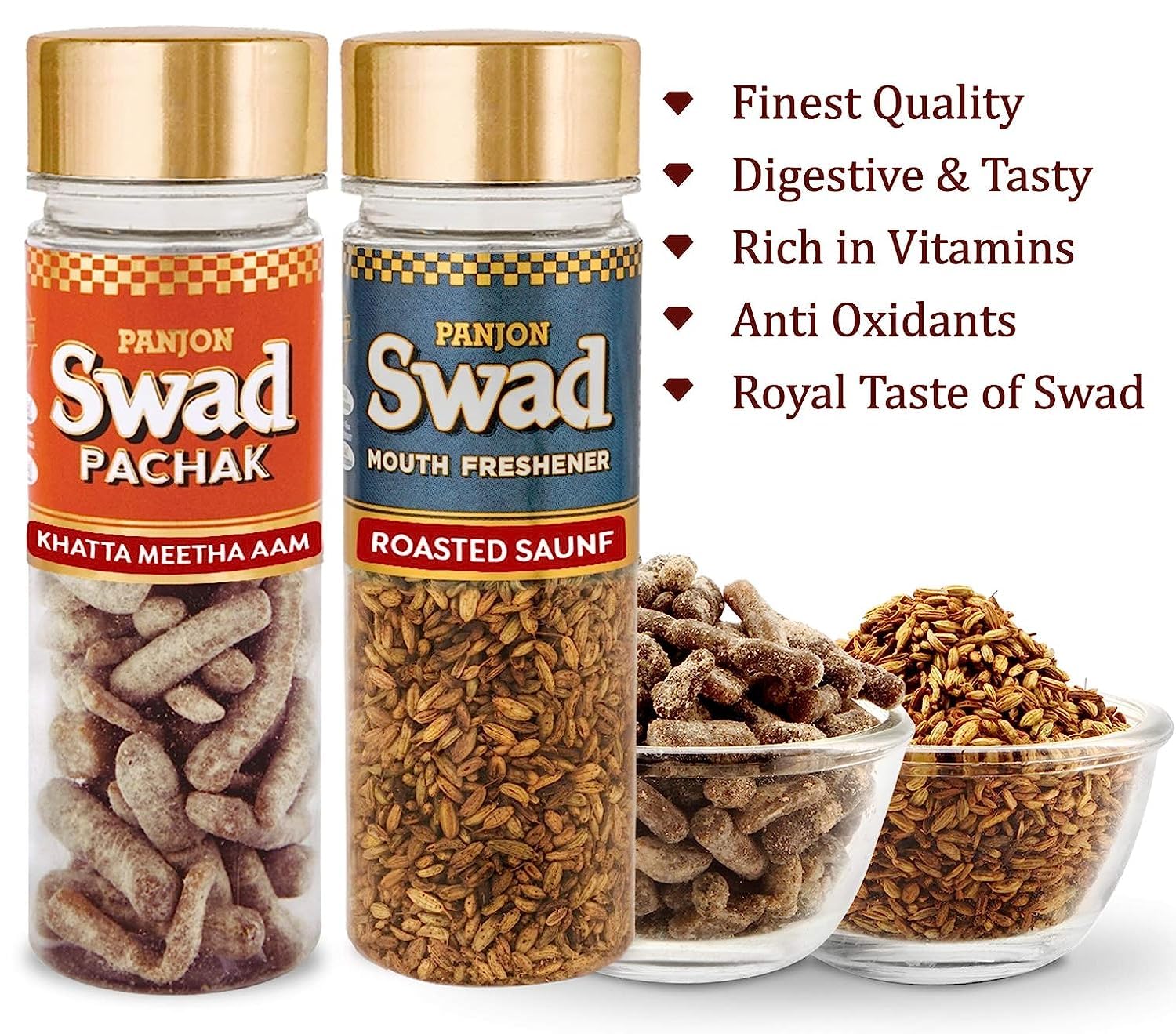 Panjon Swad Khatta Meetha Aam & Roasted Saunf (Mukhwas Mouth Fresheners) 2 Bottles 190g