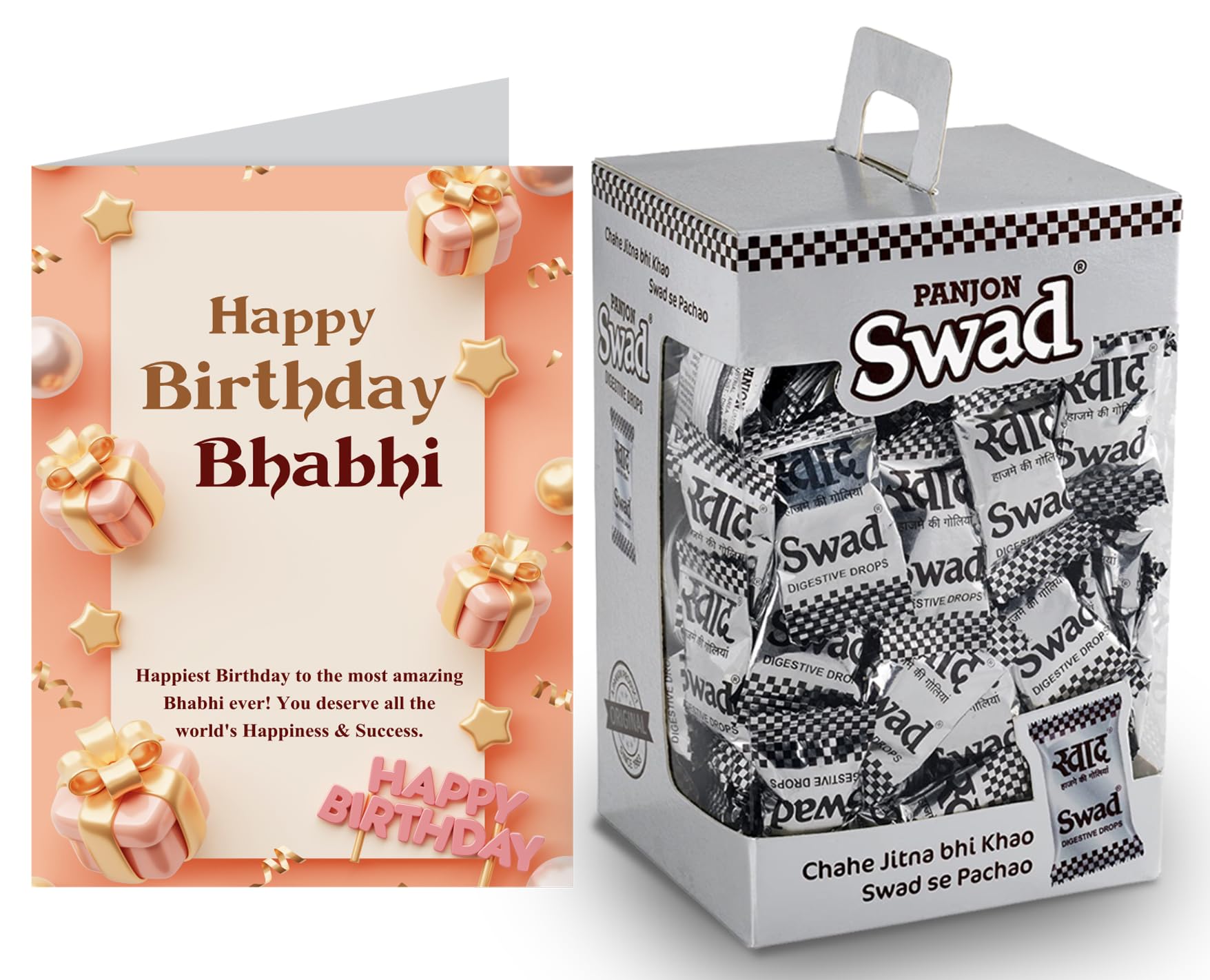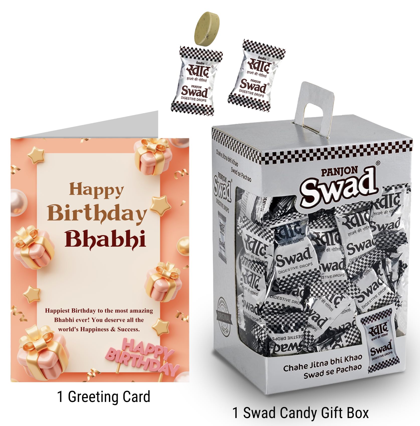 Swad Happy Birthday Bhabhi Gift with Card (Swad Digestive Candy 125 Gift Box & 1 Greeting card)