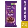 Cadbury Dairy Milk Chocolate Home Treats 126g - Pack of 4Cadbury dairy milk your favorite chocolate in the perfect family pack for those everyday moments of joy that you want to share with your near and dear ones with something sweet. Just one bite will take you into the world of warmth happiness and spontaneous fun. Rich smooth and creamy classic milk chocolate which gives you more joy in every bite. This pack contains Cadbury Dairy Milk Chocolate Home Treats 126g (Pack of 4).Cadbury Dairy Milk Silk Bubbly Chocolate bar 120g (Pack of 3)Cadbury dairy milk silk bubbly has the same smooth flavour that you would expect from Cadburyâs silk with the added twist of bubbles (completely non flavour altering). It is a milk chocolate so it is on the sweeter milkier side. The bubbles simply make it a little bigger to bite into a little airier when you are chewing. Â Contains 3 packs of Cadbury dairy milk silk bubbly 120g each.