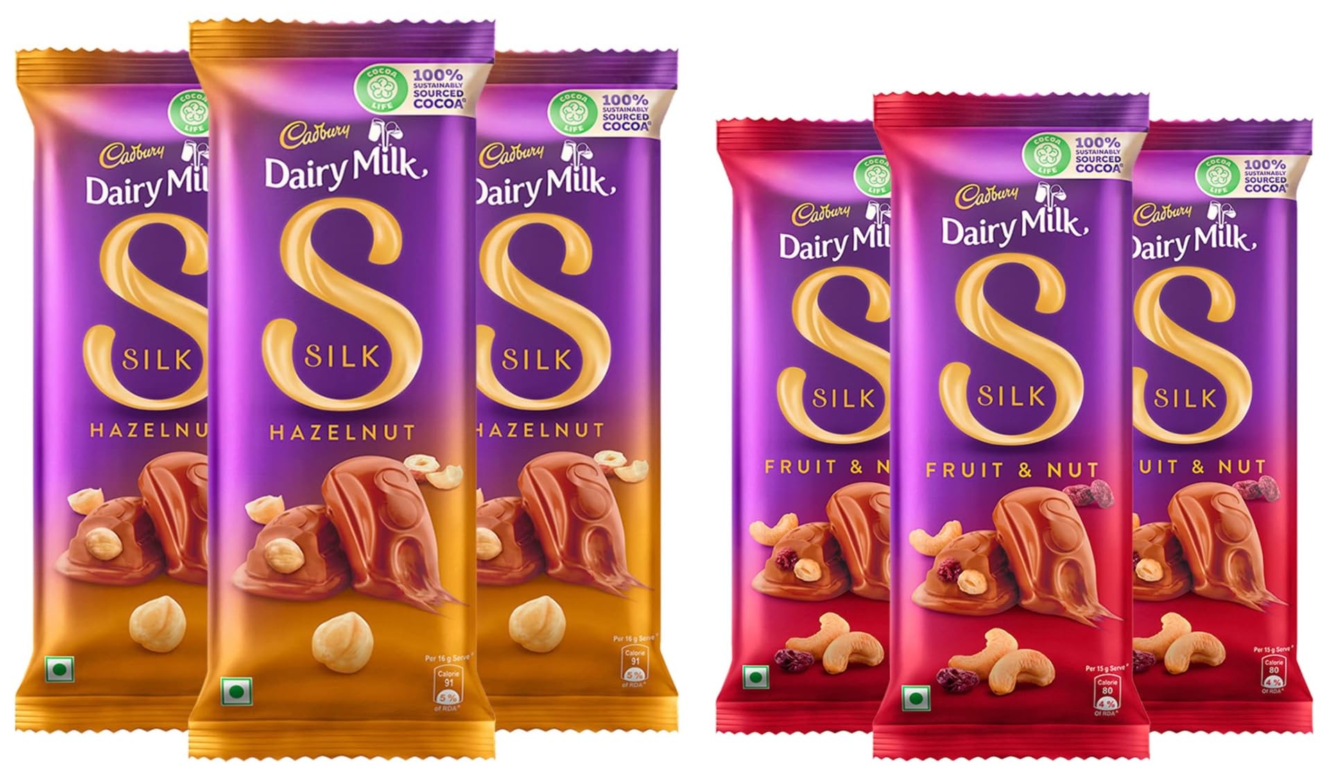 Cadbury Dairy Milk Silk Fruit And Nut Chocolate Bar 137G (Pack Of 3) & Cadbury Dairy Milk Silk Hazelnut Chocolate Bar 143 G (Pack Of 3)