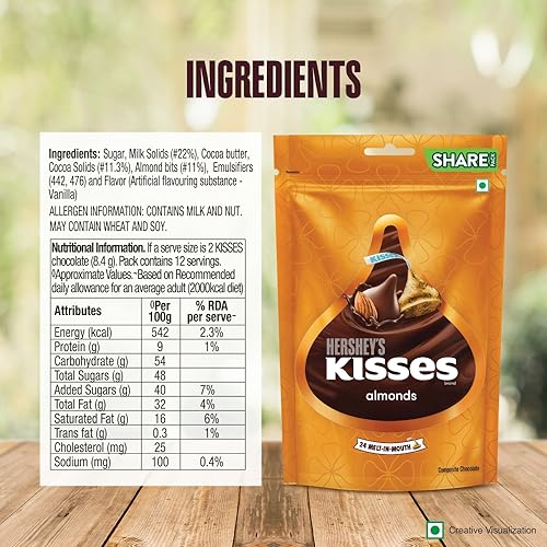 • Dive into a world of indulgence: Enjoy crunchy almond bits in luscious creamy milk chocolate in HERSHEY'S KISSES Almonds. Perfect bite-sized chocolates in 5 delectable flavors. .