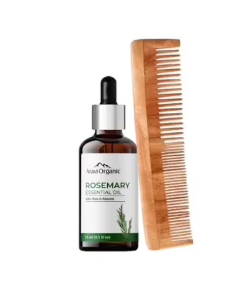 Aravi Organic aims to solve common skincare and personal care concerns with their range of natural products. Discover the benefits of plant-derived actives and give your skin and hair gentle care using pure and unadulterated herbal powders and essential oils. Aravi Organic Neem Wood Comb is a handmade comb specially designed to detangle hair without causing harm to the hair strands. It is made of natural neem wood to provide endless benefits to both your hair and scalp. Aravi Organic Rosemary Essential Oil has a fresh herbaceous sweet slightly aroma. With hints of cooling mint notes rosemary promotes hair growth focus and cleanse skin.