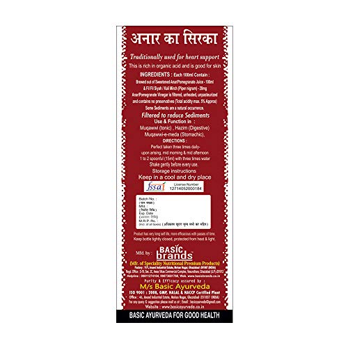 BASIC AYURVEDA Pomegranate (Anar) Vinegar 450ml Pack Of 2 |