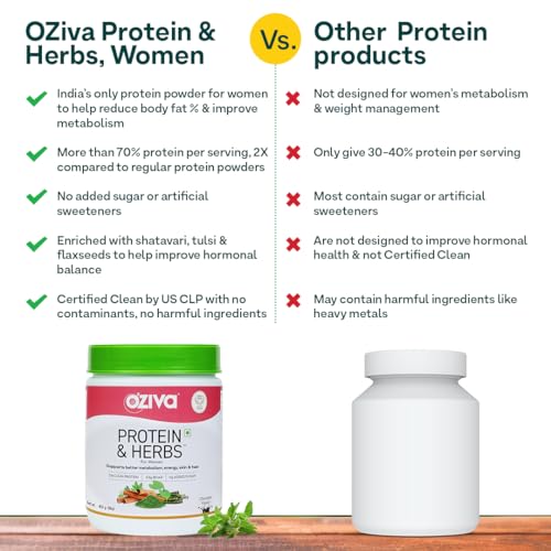 Protein & Herbs for Women | 500 Gm (16 Servings)| with Multivitamins, Curcumin, Shatavari, Tulsi for Support Metabolism, Hormonal Balance & Skin, Hair Health (1.1 Lb)