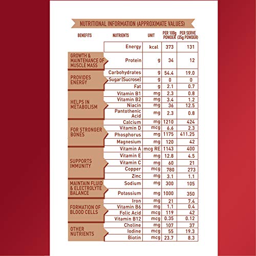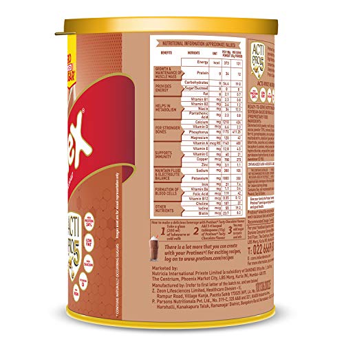 Protinex Tasty Chocolate is a vegetarian ready to serve beverage mix that helps bridge the gap of nutrients from diet of Indian Adults. Protinex Tasty Chocolate is an adult nutritional drink mix that is clinically proven to provide 34% higher immuno boosters that help build immunity# 12. Protinex contains 22 essential vitamins and minerals including 10 immuno nutrients³ that help build immunity build strength and provide energy. Protinex consists of nutrients that help in building bone strength growth & maintenance of muscle mass improving metabolism formation of blood cells and maintaining fluid & electrolyte balance**. Available in chocolate flavor Protinex easily makes its place in your everyday diet plan and with zero added sugar* and low fat it is suitable for daily consumption. It can be taken with milk or water.