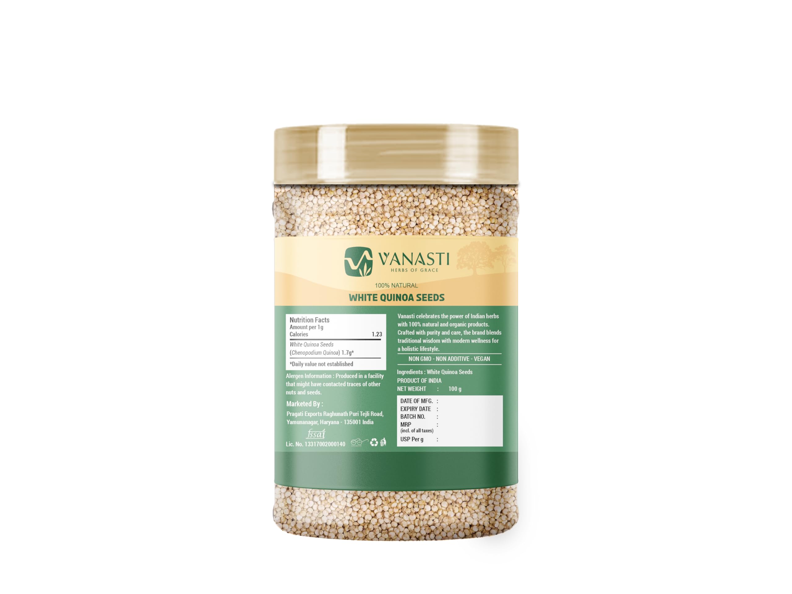 White quinoa seeds are small, ivory-colored grains from Chenopodium quinoa. They originate from the Andean region of South America. The seeds are a complete protein source and naturally gluten-free.They are rich in fiber, protein, magnesium, potassium, iron, and folate. White quinoa has a mild, nutty flavor and a light, fluffy texture when cooked. They are widely used in salads, soups, and side dishes for their versatility.