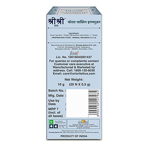 Sri Sri Tattva Coral Jasmine Infusion is made with the the flowers of the fragrant Parijata tree.