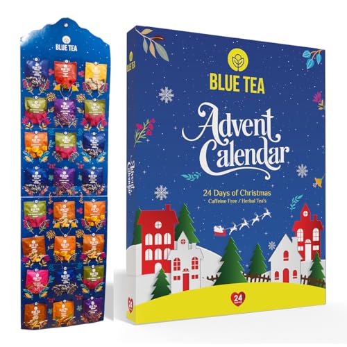 BLUE TEA Advent Calendar 2024 - 24 Tea Bags - Plant Based - 24 Unique Tea - Exclusive Holiday Tea Gift Set | For The Christmas Countdown | Flower Based - Caffeine Free - Vegan - Gift for Adult Women & Men