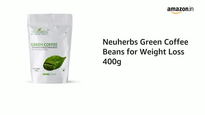 Size:400 g (Pack of 1)Neuherbs Green Coffee Beans are 100% natural fresh raw and organically grown arabica coffee beans. These are rich in chlorogenic acid an effective fat burner proven to aid weight loss and fat loss. It also helps to improve metabolism and energy levels. This organic Arabica coffee beans are boon to people with overweight and obesity to burn those extra kilos and get into shape and to take control of wellness.Why should I use Neuherbs Green Coffee Beans ?Fresh organic and 100% natural Neuherbs Green Coffee Beans help to burn the fat and reduce weight effectively. Neuherbs 100% pure and high-quality products stand apart from the rest because we knew purity better than anyone else. In fact our guiding principle is to provide you high quality pure products to help you to lead a healthy and happy life.Preparation to use: (Method 1)1- Crush or ground the Green Coffee Beans.2- Take 10g -15g ( 1 scoop) of green coffee beans Powder. 3- Pour 150-200 ml water over it and let it brew for 5-10 mins.4- Then filter the brew through a fine sieve. 5- The healthy Green Coffee beverage ready to drink.Preparation to use: (Method 2)1-Take 10g -15g ( 1 scoop) of green coffee beans. 2- Soak for 6 to 8 hours in 250-300 ml water.3- Put it on the stove and bring to boil let it brew for 5-10 mins.4- Filter the brew through a fine sieve. 5- The healthy Green Coffee beverage ready to drink.