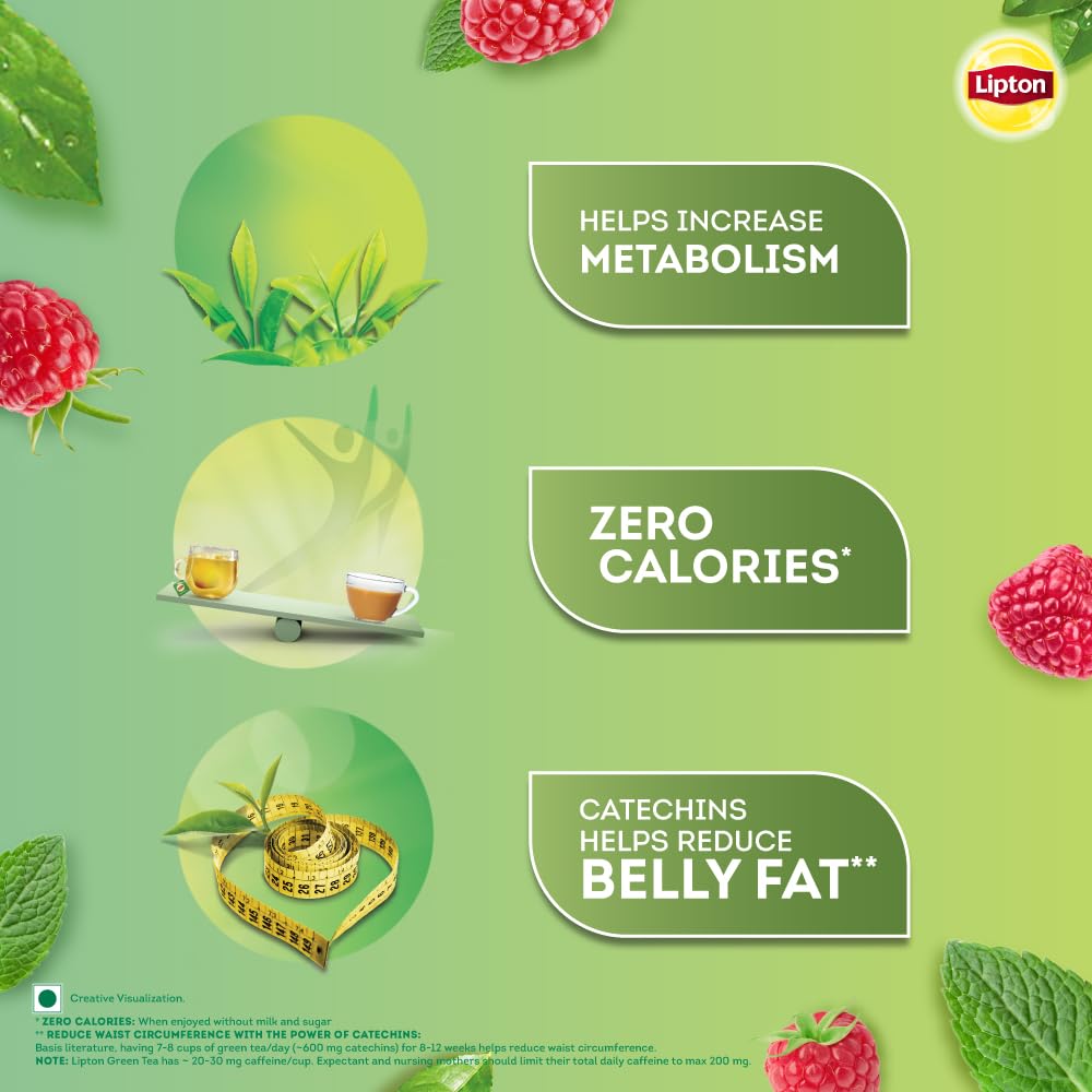 It’s not just a cup of tea its therapy - One Sip at a Time. Lipton Green Tea is not just a regular cup of chai we believe it’s therapy for your body. Wake up to a morning cup of hot Lipton green tea and feel how it leaves you feeling light and active. Awaken your senses - one sip at a time. Lipton Green Tea Bags in Raspberry Mint Flavor have this goodness. Choose Lipton Green Tea Raspberry Mint as your go-to beverage during the day. Buy Now! Magic of Green Tea Green tea is produced when freshly plucked leaves are heated rolled/cut and then dried. The catechins in the fresh leaves are preserved during the green tea process making green tea rich in catechins. Also green tea is typically drunk without milk and sugar and hence gives zero calories as compared to the ordinary chai made with milk and sugar. Available in a Range of Flavors Lipton offers a range of different flavours to ensure that you are offered variety and enjoyment while drinking tea. Lipton flavours some of its teas with added natural flavours and no artificial flavours are used. You may try Lipton Green tea in Clear & Light Honey & Lemon Raspberry Mint Lemongrass Ginger Tulsi Natura and Lemon Zest flavors as well available in pack size 25s Tea bags. Next best to Water Brewed Unsweetened Lipton Green Tea being 99.5% water is a great way to meet your daily required fluid intake. Staying hydrated is essential to ensure bodily functions are carried out efficiently.