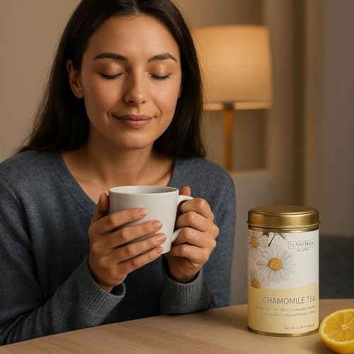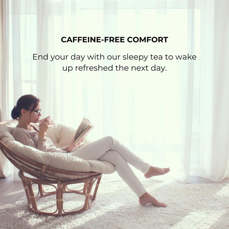 Caffeine-Free Comfort: Unwind with a cup of caffeine-free chamomile tea perfect for promoting relaxation and restful sleep.