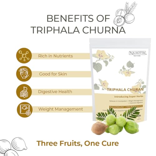 Namhya Foods Triphala Powder is a natural and authentic herbal powder made from a blend of three fruits: Amla Haritaki and Bibhitaki. Triphala Powder is a well-known Ayurvedic formulation that has been used for centuries to promote digestive health detoxify the body and support overall wellness. Namhya Foods Triphala Powder is sourced directly from farmers and is free from preservatives and additives ensuring a pure and authentic product. The powder can be mixed with warm water or milk for consumption or used in skincare and hair care formulations. Namhya Foods Triphala Powder is a safe and effective choice for those seeking a natural health supplement